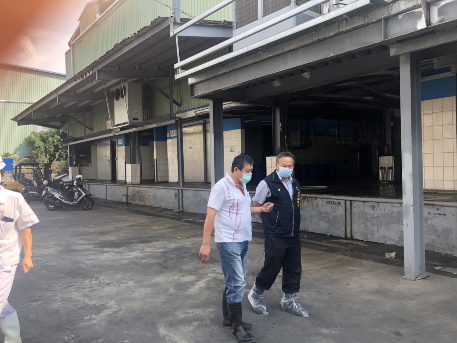 國內新冠肺炎疫情嚴峻,台中市政府積極配合中央落實防疫,農業局長蔡精強昨(26)日率隊至屠宰場督察並宣導防疫措施。蔡局長表示,屠宰場是台中畜禽產品穩定供應重要管道,避免疫情衝擊民生必需品供應量,須確保營運不間斷,因此加強督導屠宰場落實防疫措施,全力維護畜禽產品價格平穩。
