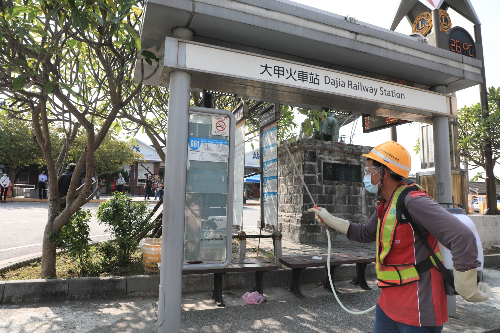 環保局表示,為避免疫情擴散,防疫消毒大隊於遶境活動前1日,鎖定交通場站、廟宇等人潮密集場域的戶外公共環境執行強力清消,並針對遶境信眾頻繁進出的沿線火車站(大甲至新烏日站及台中火車站等10站)出站口設置鞋底消毒毯,全力降低病毒傳播風險。此外,沿線區公所也同步動員逾3,000名環保志工,從白天至深夜與清潔隊員合力維護街道及周邊環境整潔,內外夾攻阻斷病毒傳播鏈。
