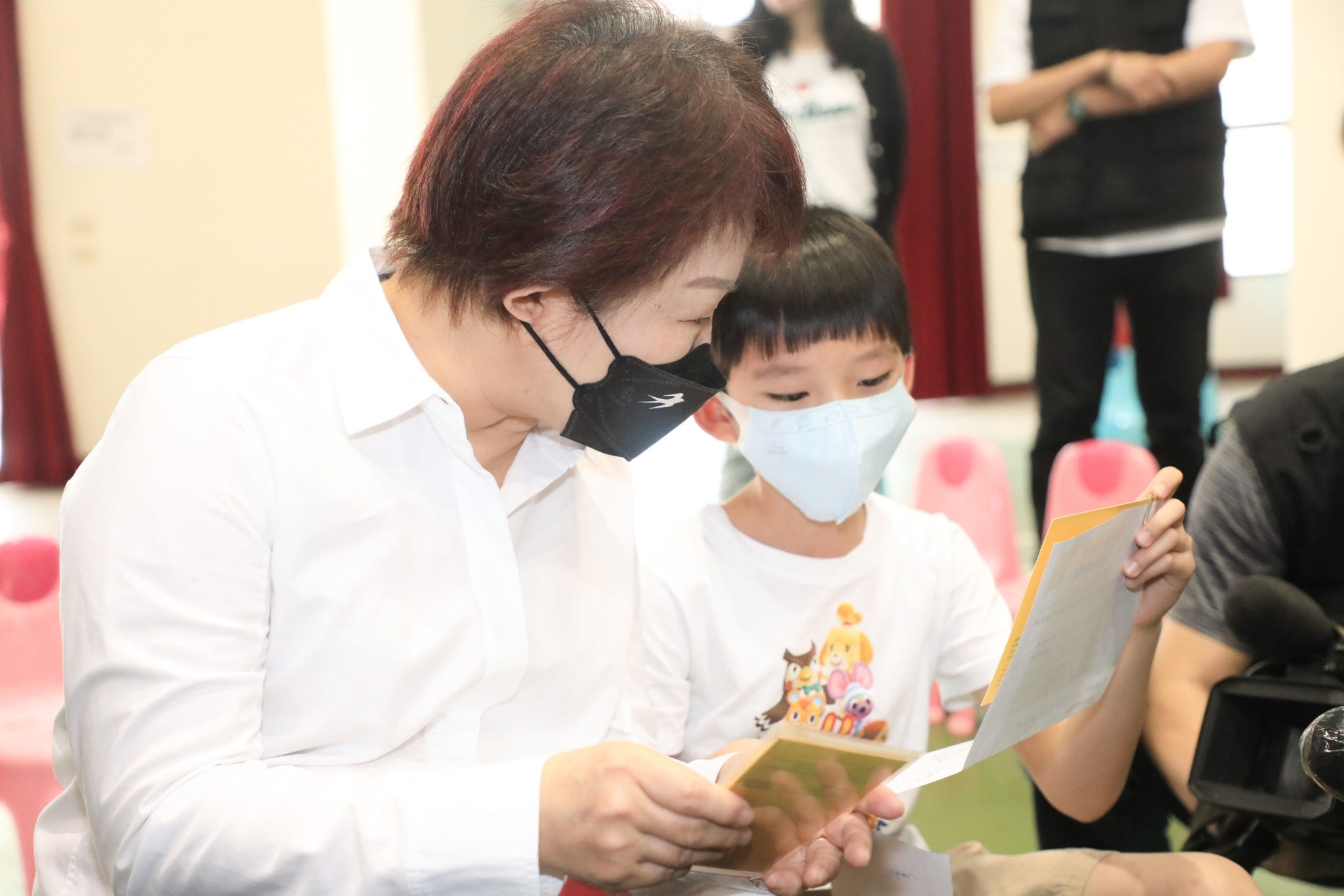 盧市長提醒,小朋友防護力相對不夠,這次快打站開放家長陪同,為小朋友的安全,家長須出示施打三劑的證明,如小黃卡、手機顯示等,若沒打三劑證明,家長不得入內,但現場有已打三劑的教職、醫護、志工、家長會暫代爸媽陪同,不用擔心。
