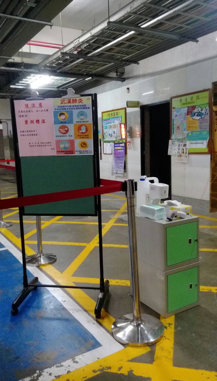 稅務局在入口處安排員工雙手消毒後全程配戴口罩為市民量測體溫