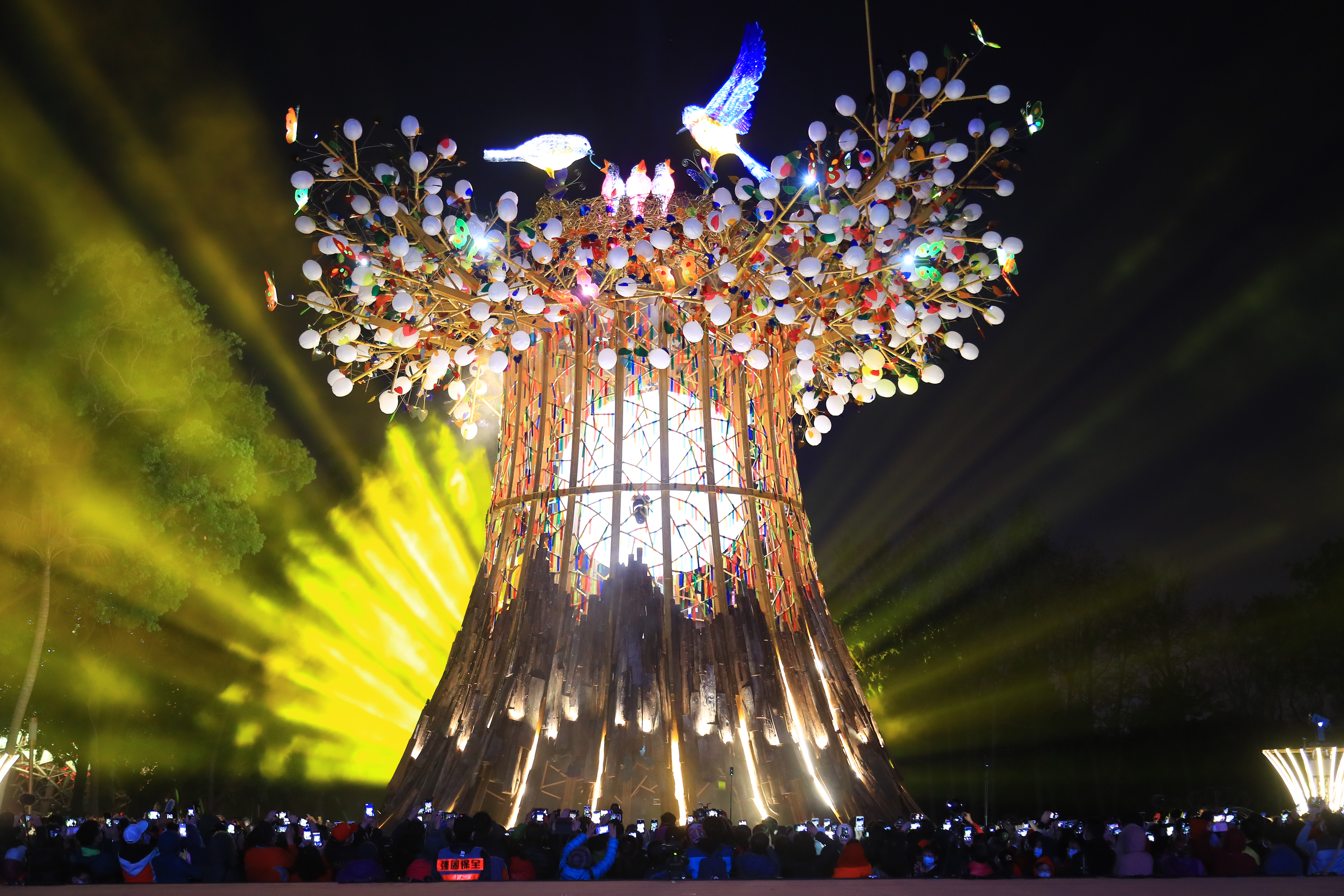總統蔡英文、立法院副院長蔡其昌、交通部長林佳龍、台中市長盧秀燕、與觀光局長周永暉等人今晚一起為台灣燈會開幕點燈,在現場民眾一起倒數下,共同按下希望的種子,主燈「森生守護-光之樹」點燈瞬間啟動科技燈光主燈秀演出,璀璨四射。