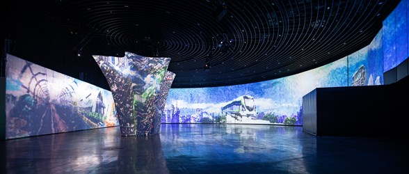 2020台灣燈會精采不斷!位於后里馬場園區的花舞館設置「環·台中光影燈區」,特別邀請新加坡金氏紀錄光雕投影團隊Hexogon Solution(賀喜),結合數位科技及投影技術,跳脫傳統燈座形式,打造9公尺高巨幅無邊界聲光投影,並結合嗅覺香氛等感官感受,是台灣燈會歷年來絕無僅有的體驗!