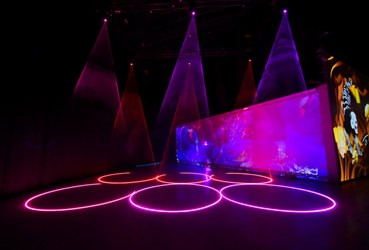 幕後負責操刀的Hexogon Solution(賀喜)創意總監黃清毅表示,這次最大的挑戰,是如何將「光」與「美」整合,加上大面積投影配置的3D模擬、折射計算上相當耗時,讓團隊費盡心思,除光雕投影外,這次更加入雷射、香氛、裝置藝術等,呈現「大型投影」、「互動科技」、「聲光效果」等多層次的立體環繞效果。