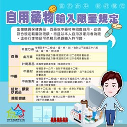 衛生局表示,民眾出國旅遊攜帶或購買自用藥品時,必須事先清楚攜帶藥品出入境規定,須依照「入境旅客攜帶自用藥品限量」攜帶數量,每個人可以攜帶多少藥品入境都有明確規範。