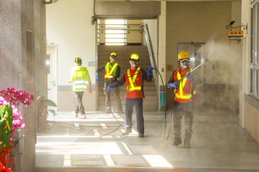楊局長表示,此次由環保局與教育局通力合作,環保局負責學校周邊公共環境消毒,提醒學校也需加強經常接觸的門把、桌面、電燈開關、或其他公共區域消毒,維護學生健康。