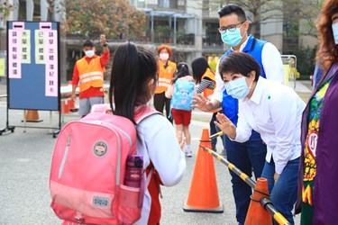 全國高中職以下學校今(25)日開學,為確保學校落實防疫工作,市長盧秀燕親自前往北屯區仁美國小關心學生入校前體溫量測情形,並於教室外視察衛教宣導課程。盧市長表示,市府全力備戰,已協助將全市高中職以下學校完成校園消毒,同時督促各校依據SOP展開防疫演練及物資整備,目前防疫物資都已備齊,「台中市準備好了,大家可以放心!」