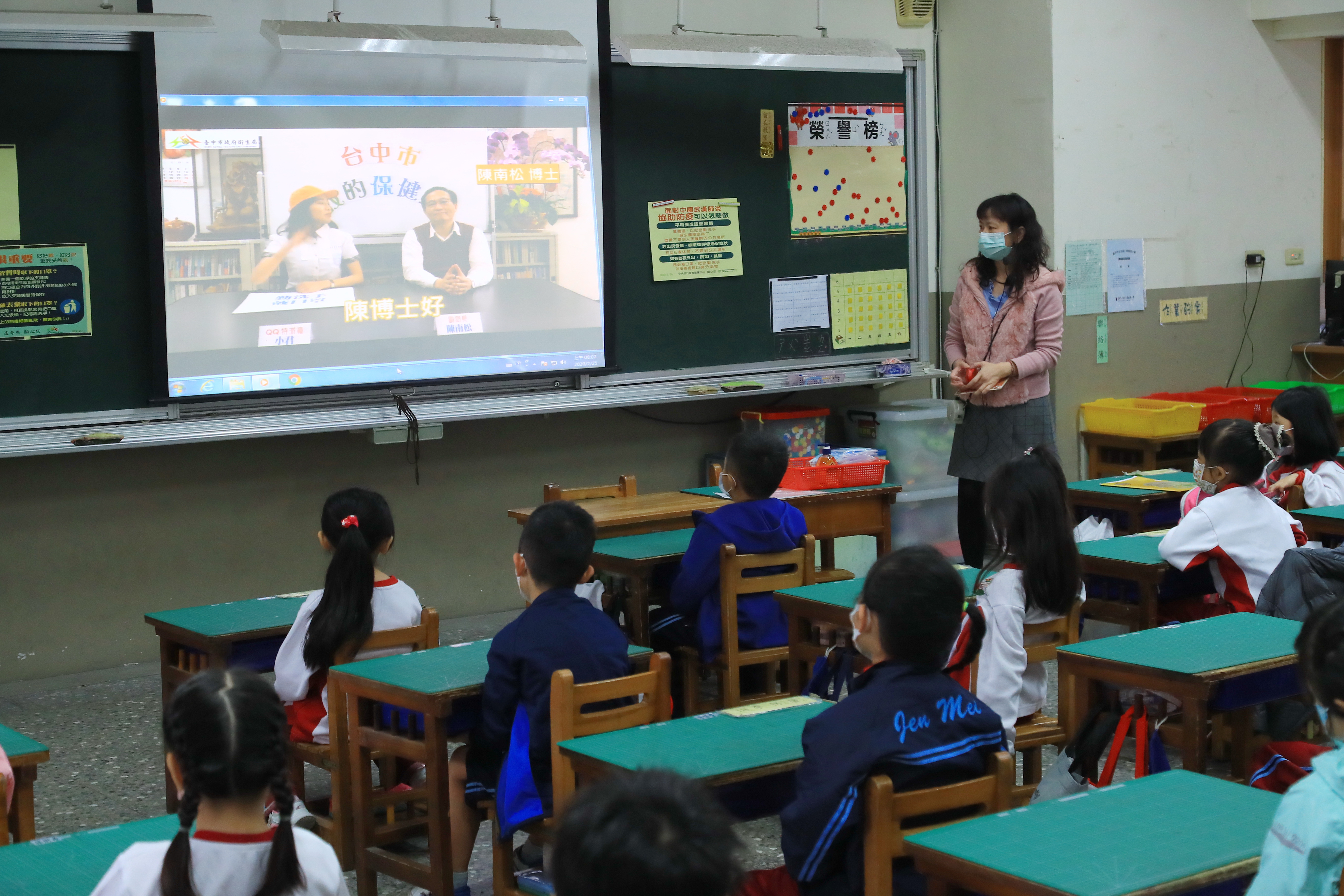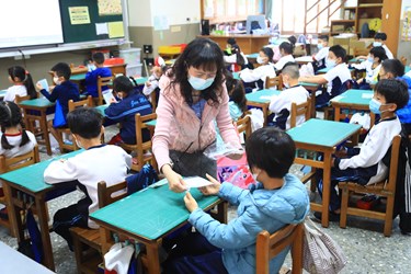 仁美國小今日一早即展開防疫工作,包括落實學童入校前量測額溫、耳溫複檢,以及在第一堂課衛教宣導課程後,由老師發送每位學童2片口罩等,任何一個程序都不馬虎,希望讓疫情風險降到最低。