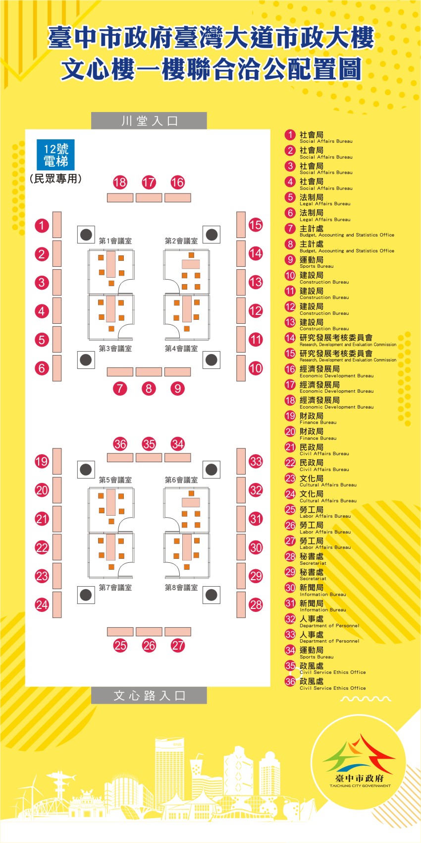 台灣大道市政大樓文心樓1樓中庭聯合洽公專區