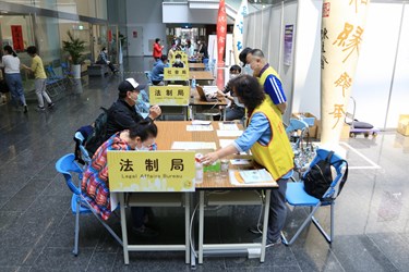 今日市府防疫升級,1樓設置聯合洽公區,許多民眾一早到市府洽公,不需搭電梯上樓,就可直接在1樓找到各局處櫃位,直接登記辦理業務,上午實施情況順暢。民眾表示,市府為加強防疫,除洽公需戴口罩、量額溫、消毒雙手、實名登記,今天更將各局處洽公區直接設置在1樓,防疫做得很完整,這是美意一樁,自己願意全力配合。