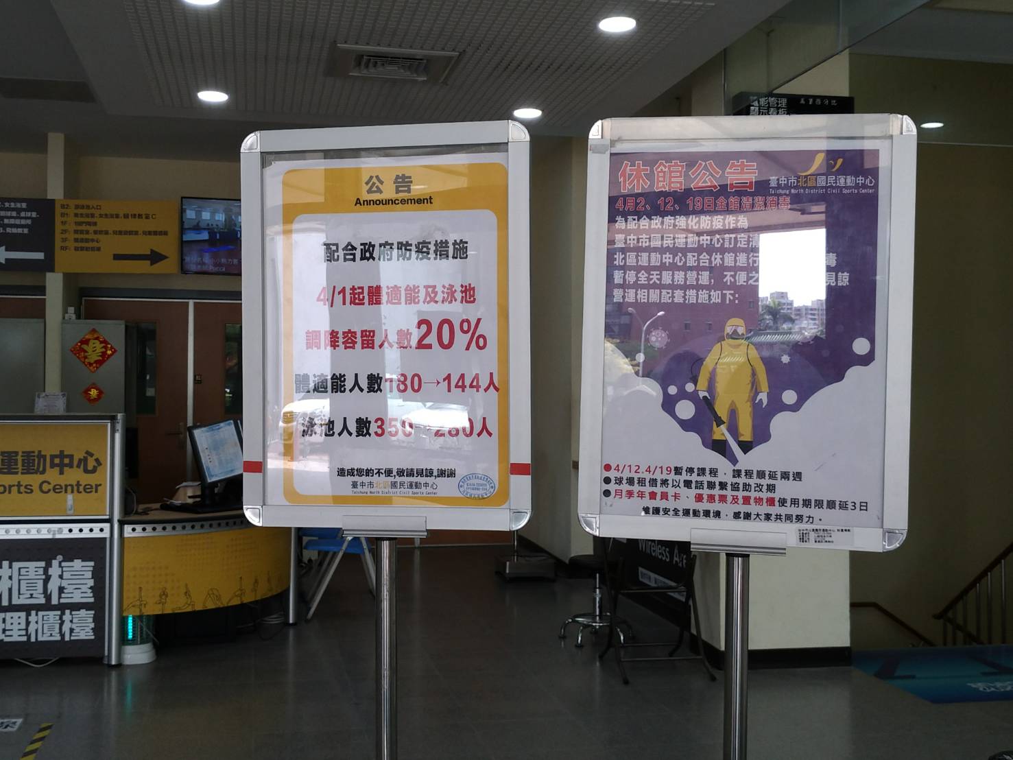 因應新冠肺炎疫情,台中市政府運動局落實所轄運動場館加強防疫,除執行實名制入場、單一出入口管制、入場量測體溫、雙手消毒、一線服務人員全程佩戴口罩,更將於朝馬、北區、南屯國民運動中心及港區運動公園執行「一週一閉」制,今(1)日起落實每週1日封館擴大消毒,並進行人流減量20%控管,降低群聚感染風險。