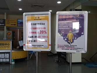 此外,依據「台中市政府因應 COVID-19 疫情防疫規範」,規定活動空間容留人數以每人大於3至4平方公尺為原則計算,經評估國運場館活動空間後,市府自今日起執行各場館空間人流減量20%管制,並應於各運動場館入口處公告,後續將視疫情狀況,評估延長管制時間、人流擴大減量至50%或直接閉館等措施。