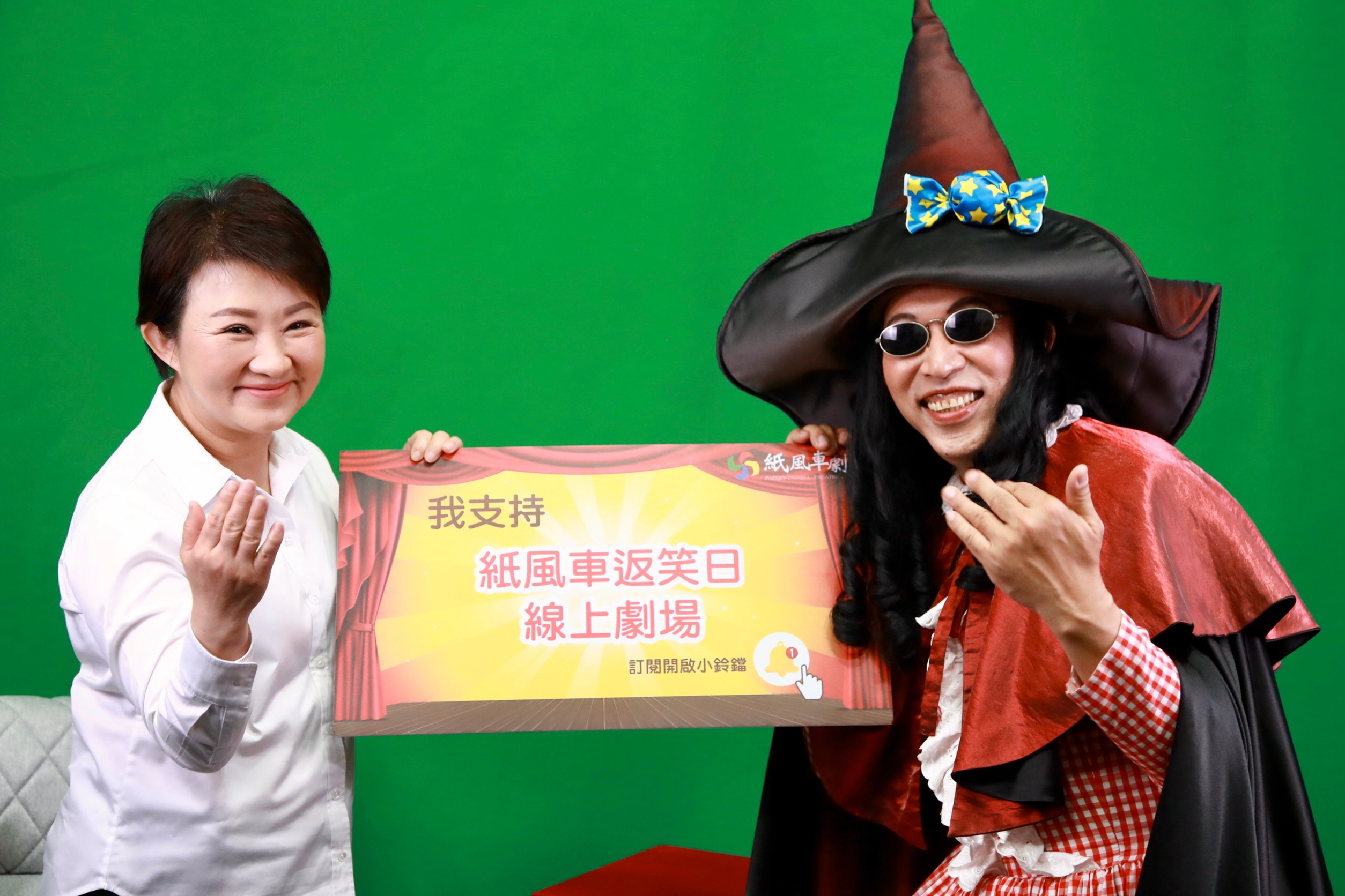 新冠肺炎疫情衝擊全台藝文活動,台中市長盧秀燕今(17)日以行動力挺藝文團隊,參加「紙風車返笑日」線上劇場錄製,和主持人巫頂、阿瘦同台演出,透過輕鬆機智對答,擦出不少精采火花,也是節目自3月9日開播來,首位加入互動的特別來賓。盧市長表示,市府將提供30萬元獎金給「紙風車返笑日」平台計畫,獎勵台中影片創作者投稿入選的影片,期盼拋磚引玉,幫助劇團度過疫情難關。