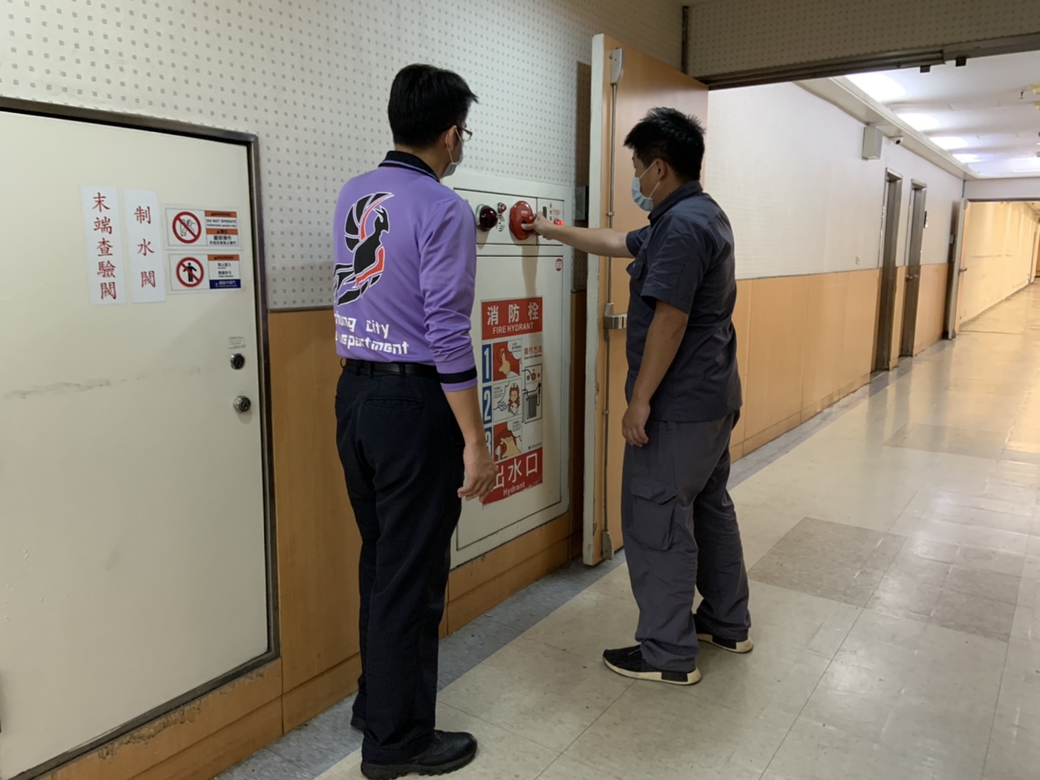 此外,醫院場所委託消防專技人員進行消防安全設備檢修、維護、修繕等作業,或者消防局專責檢查小組人員執行醫院檢查時,請依中央防疫工作指引,建立相關防疫措施。(4/22*18)*消防局