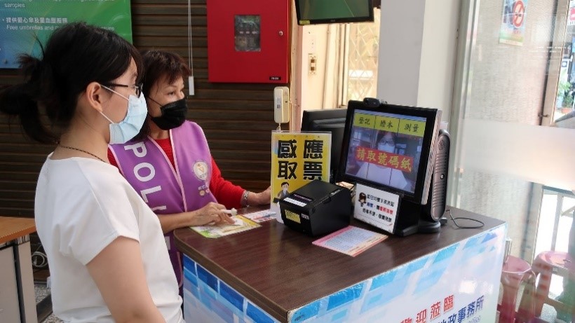 針對推動影像感應取號及身分證條碼取號服務,中正地所主任林永成說明,站在民眾立場設想是第一線機關首要之務,中正地所為提供民眾更安心安全的洽公環境,也將持續宣導落實手部衛生及保持社交距離,並執行進入機關一律配戴口罩、量測體溫、消毒雙手與實名登記等防疫措施。