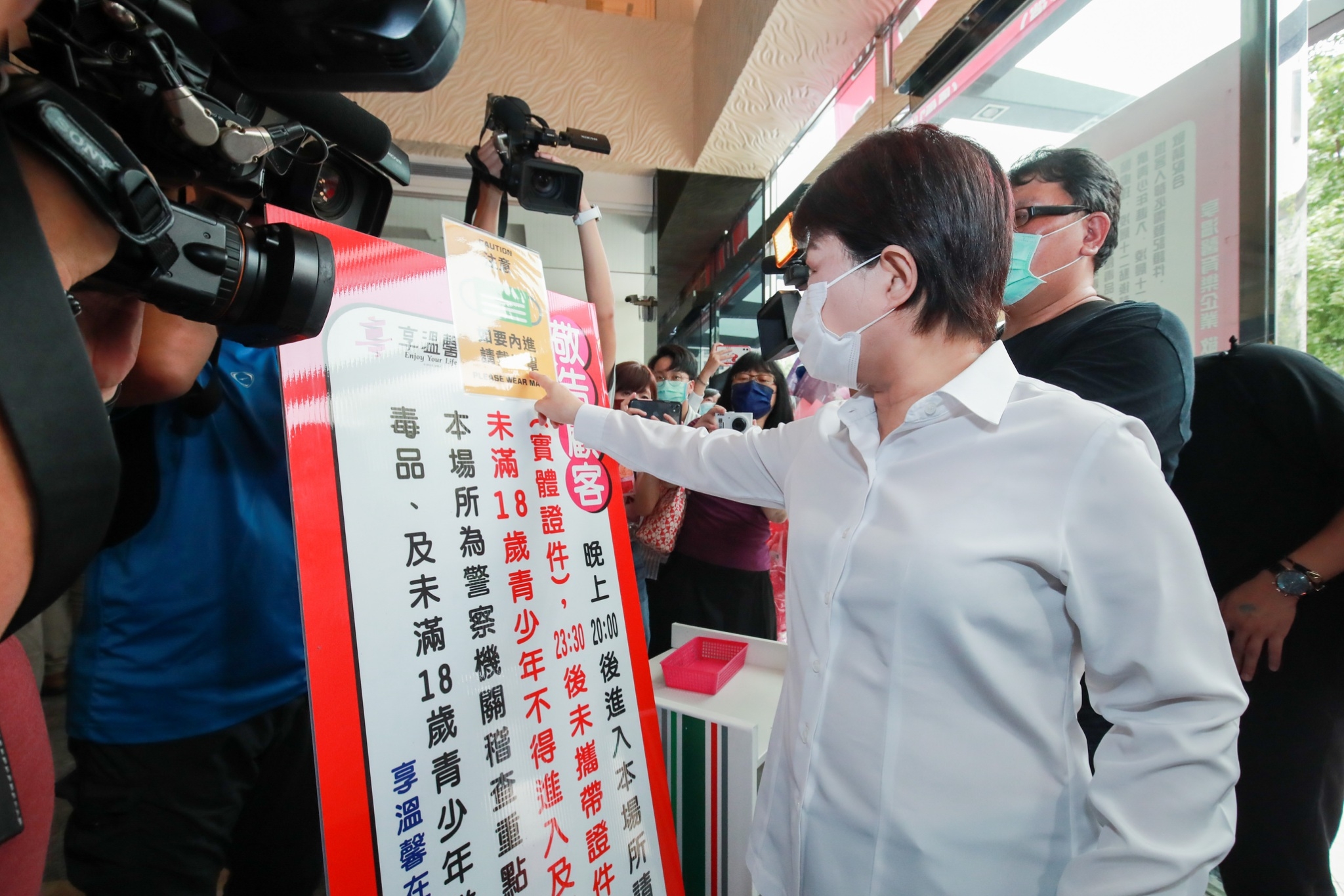 國內近日新增感染源不明確診個案,台中市政府今(4)日啟動「戴口罩及實聯制查察專案」,市長盧秀燕下午親率隊至享溫馨KTV台中店查核防疫措施落實狀況。「保民不擾民!」盧市長表示,為了城市安全,她必須拉緊防疫繩索,加強防疫工作,打造各場所成為安心的消費環境,民眾只要到五大場所均需戴口罩,落實實聯登記,「生活放輕鬆,防疫不放鬆」。