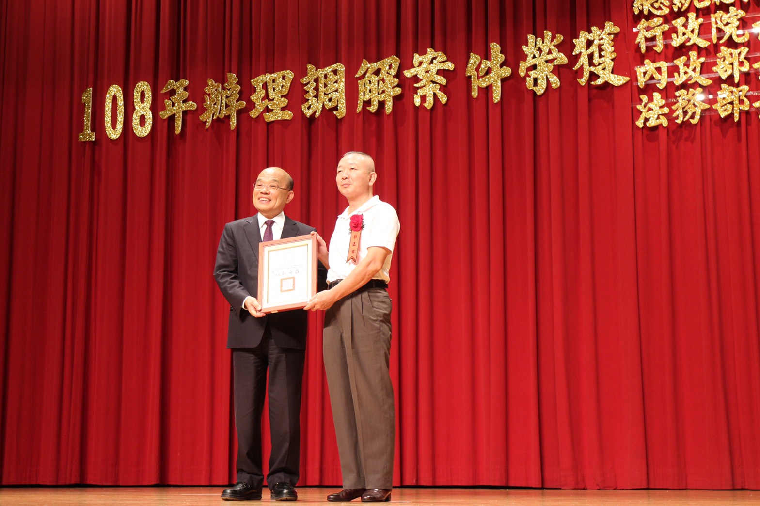 行政院、內政部與法務部今(26)日在台北國軍藝文中心共同舉辦績優調解人員表揚大會,由行政院長蘇貞昌、內政部長徐國勇及法務部長蔡清祥頒獎表揚各縣市績優調解人員,台中市共31名績優調解人員獲獎,獲獎人數全國第二,成績優異。