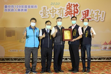 台中市政府民政局今年規劃舉辦4場次里鄰長及民政人員表揚活動,今(12)日舉辦第3場次表揚,有來自西屯、南屯、太平、大里、霧峰、烏日區的14名特優里長、5名績優民政人員、260名績優鄰長及61名服務年資超過20年的資深鄰長,共340人獲獎。副市長黃國榮代表市長盧秀燕頒獎感謝里鄰長們辛勞付出,期勉所有里鄰長持續為鄰里服務,為市民朋友爭取最大福祉。