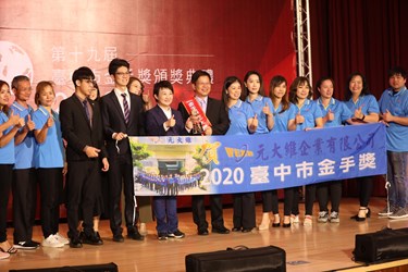 第19屆台中市金手獎選拔結果出爐,由17家優秀中小企業脫穎而出拔得頭籌,為肯定在地企業對台中經濟的貢獻,台中市工商發展投資策進會今(31)日上午於裕元花園酒店盛大舉行頒獎典禮,由台中市長盧秀燕公開表揚,她肯定獲獎企業在嚴峻經濟情勢下仍逆勢成長,盼造福員工、回饋社會,市府也將扮演企業最強後盾。