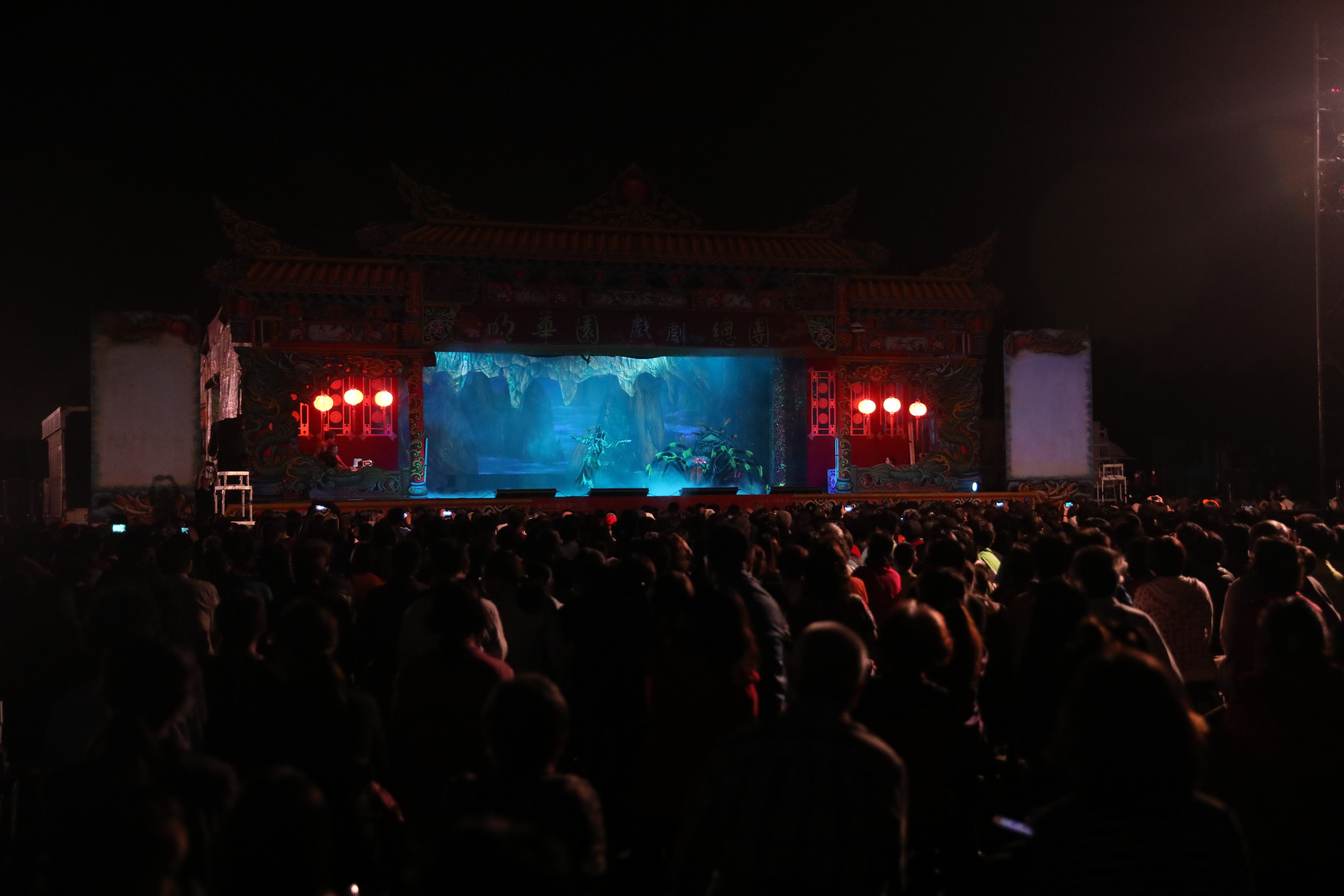 台中市龍井區公所邀請明華園戲劇總團今(1)晚在龍津高中演出《劍神呂洞賓》,由無敵小生孫翠鳳領銜主演,精湛演出搏得全場超過三千名大小戲迷掌聲及喝采。台中市長盧秀燕到場同樂,她說,今年各行各業受新冠肺炎疫情影響相當艱辛,藝文團體也在其中,市府邀請傳統戲曲來到台中,推廣傳統文化、支持藝術產業,也希望民眾享受精采表演。