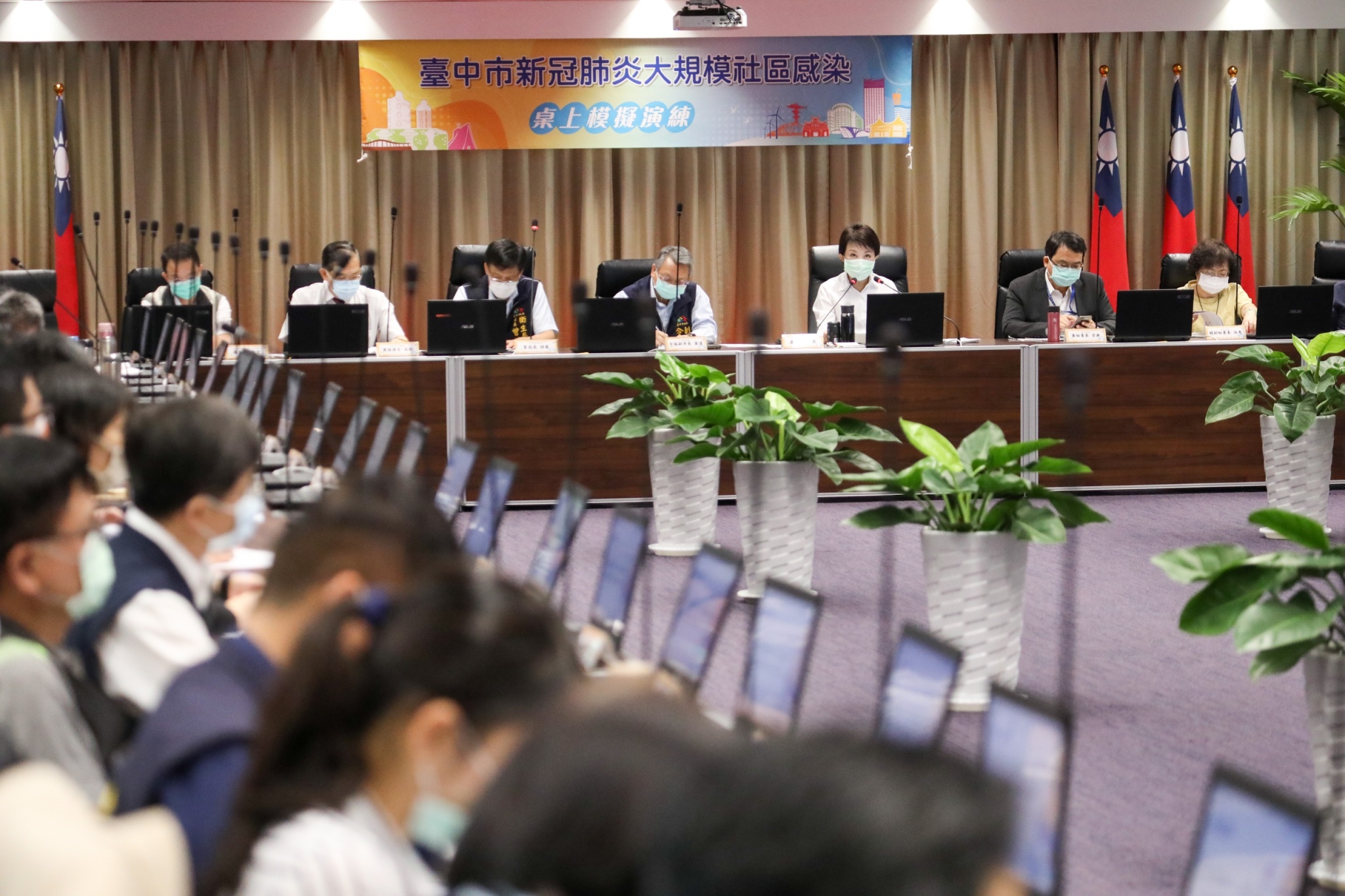 台中市政府今日於防疫會議上舉行桌上模擬演練,模擬秋冬來臨,新冠肺炎出現第二波疫情,且陸續出現本土確診病例,市府共分3階段、25個議題進行推演,讓各單位再次盤點資源,驗證各項管制措施,屬台中市應變醫院的衛生福利部台中醫院也一同參演。