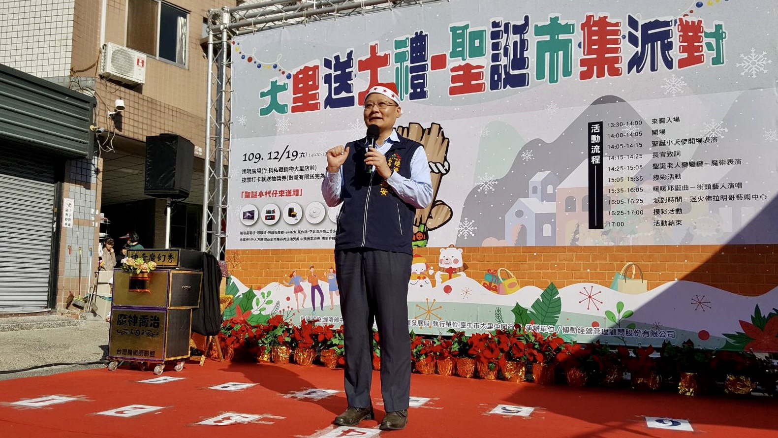 台中市政府經濟發展局輔導大里中興商圈今(19)日舉辦「大里送大禮-聖誕市集派對」,除邀請商圈特色店家設置攤位,大里中興商圈祭出「聖誕三重送」,參與遊戲即送VR體驗券、還可以抽55吋液晶電視、SWITCH、空氣清淨機等多項大禮,還有打卡送商圈守護神杙仔的小方巾,歡迎民眾一起參加派對,歡慶聖誕節。