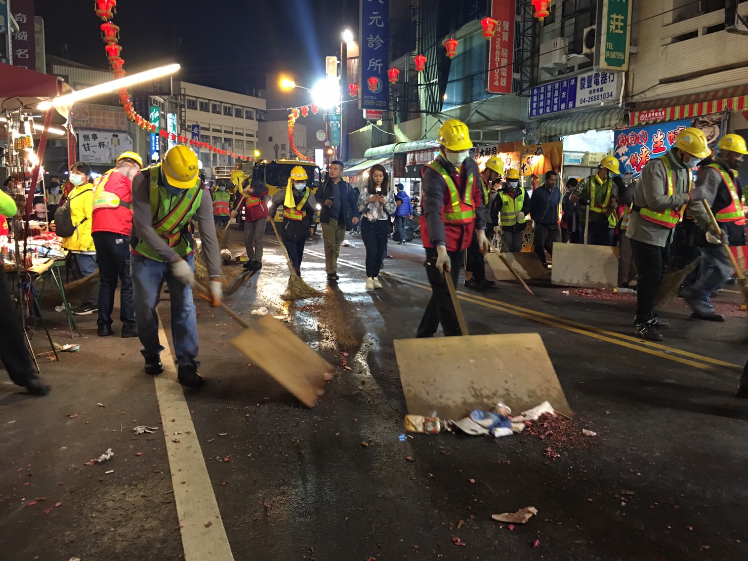 環保局長陳宏益表示,感謝環保志工及清潔隊員的辛勤付出,在短時間內恢復市容,還給市民乾淨的生活環境;他也呼籲大家在遶境時兼顧防疫與環保,除務必戴口罩、勤洗手,做好個人衛生防護外,飲食也請使用環保餐具,落實垃圾減量。(4/10*10)*環保局