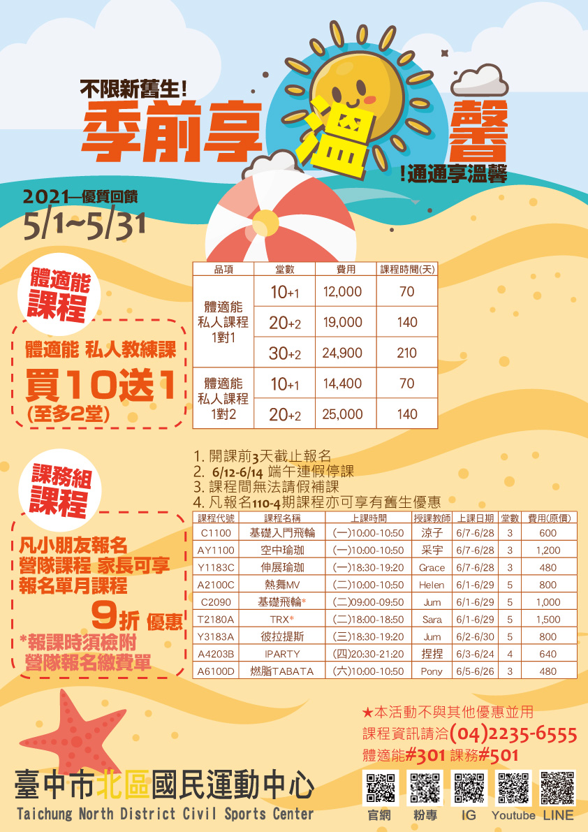 相關活動資訊可至運動中心官網或臉書粉絲專頁查詢,連結如下: