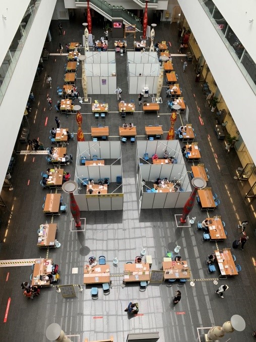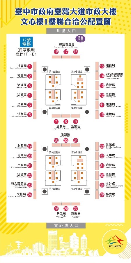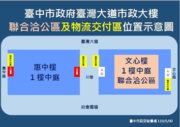 面對國內本土疫情持續延燒,台中市政府自明(13)日起重啟台灣大道市政大樓文心樓1樓及陽明市政大樓1樓中庭的聯合洽公區,而台灣大道市政大樓惠中樓整棟、文心樓及陽明市政大樓2樓以上僅限市府員工進出。秘書處表示,重啟聯合洽公區除可縮短洽公時間,也可降低民眾非必要接觸風險,全面防堵疫情。