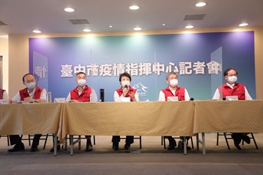 台中市政府今(17)日下午召開防疫因應作為記者會,市長盧秀燕、副市長黃國榮、衛生局長曾梓展、教育局長楊振昇、民政局長吳世瑋、勞工局長張大春、新聞局長黃國瑋、經發局副局長李逸安共同出席,公布今日新增案例足跡,向外界說明市府因應作為。