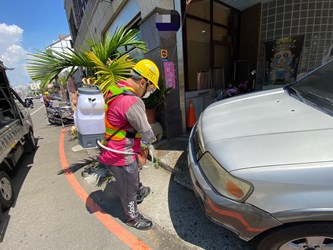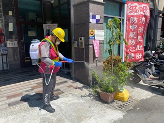 國內疫情升溫,為防止台中疫情擴散,台中市政府環保局防疫消毒大隊今(19)日再度動員11區清潔隊,總計百名消毒人力、22台背負式水霧機、12輛消毒車及3輛霧砲車,全面消毒大里區戶外公共環境。環保局長陳宏益除到場勉勵抗疫消毒作業弟兄,也再三叮嚀仔細消毒民眾易接觸地方,如候車亭座椅、扶手等,全力守護城市環境安全。