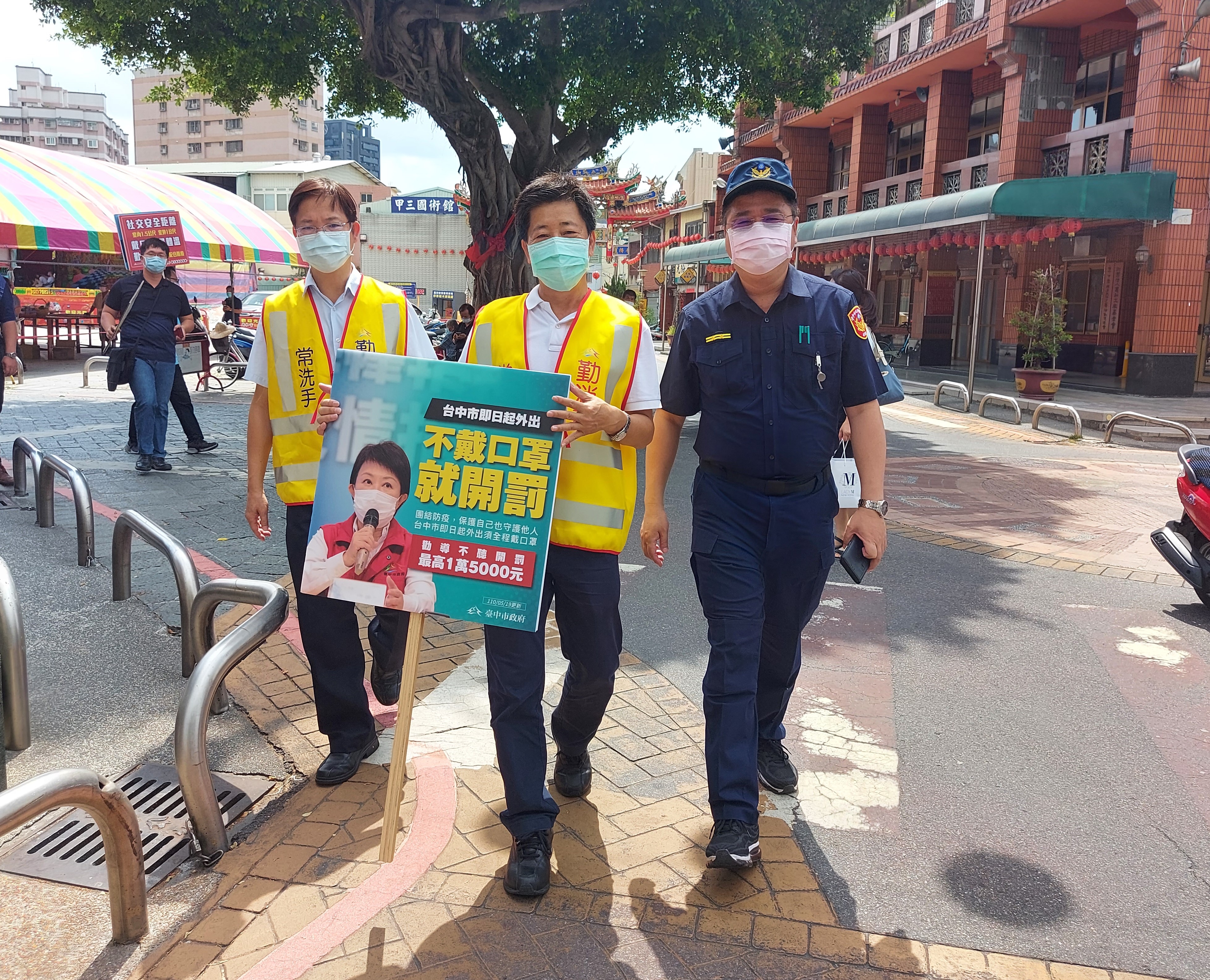 國內疫情嚴峻,中央疫情指揮中心宣布全國升至第三級警戒,民眾外出須全程佩戴口罩,經勸導不聽最重可罰1萬5,000元。台中市政府民政局副局長周瑺玫今(21)日前往南屯區萬和宮和文昌公廟視察宗教場所防疫情形,同時加強防疫宣導,並呼籲民眾疫情期間避免參加聚會活動或前往人潮聚集、密閉空間的公共場所,若有特殊情況須外出時,也請全程佩戴口罩,落實防疫措施。