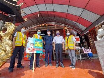 「防疫當前,人人有責!」周副局長今日會同南屯區長林秋萬、南屯派出所所長江松泳及南屯里長林秋潭等人視察萬和宮及文昌公廟防疫工作,她表示,今日未見違規情形,現場工作人員及參拜民眾也全程佩戴口罩並落實實聯制,且廟埕參拜民眾也遵守人流管制無群聚情形,顯見全民防疫意識大提升,也感謝萬和宮董事長蕭清杰及文昌公廟董事長陳梓賡全力配合政府落實各項防疫。