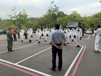 陸軍十軍團昨日派遣36化學兵群,包含15名官兵、6台背負式消毒器及中型戰術輪車等機具,由楊中校及黃中尉率隊,前進朝陽科大支援校園內部重點區域全面清消,範圍包括快篩站、教職員辦公區、教室、宿舍及餐廳等區域,從黃昏一直消毒到夜晚,每位官兵都盡可能地把每個角落都消毒乾淨,確保師生安全無虞。