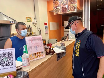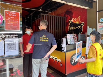 經發局進一步表示,經發局謝專委今日上午帶隊到第五公有零售市場及周邊自立街、大明街、自治街、樂群街等沿街店家稽查,發現有5位民眾未確實將口罩戴好,當場立即勸導,民眾也配合拉至鼻樑上方,整個稽查過程未發現完全未佩戴口罩者;此外,林專委也率隊至逢甲商圈及周邊店家進行稽查及宣導,總計宣導7家店家,皆已配合暫停內用,並配合外帶實聯制規定,於入口設置明顯店家QR Code