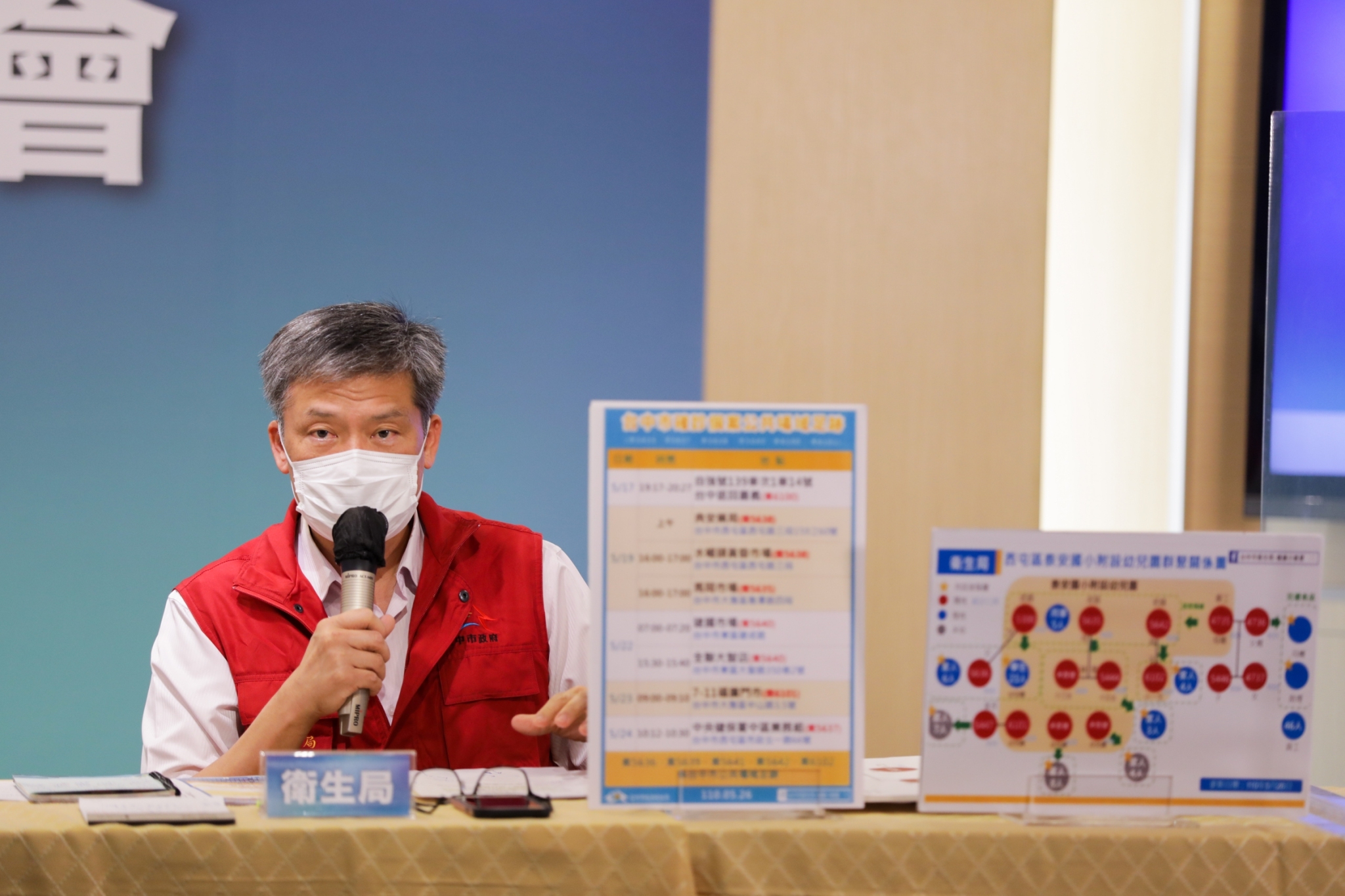 衛生局長曾梓展進一步說明,今日新增8例,包括案5635泰安附幼老師,也是案5444的媽媽,曾與3位同事一同用餐,其中案4735、5300已確診,另一名同事為陰性;案5636為案5300的父親;案5642泰安附幼主任,5月7日至9日曾到萬華、基隆旅遊,因案4735女廚工確診,經衛生局通知採驗後確診;案6101泰安附幼4歲男童,為案5300的學生,媽媽為案5447;案6102泰安國小1年級男童,為案5642的兒子,5月7日至9日曾與家人至萬華、基隆旅遊。
