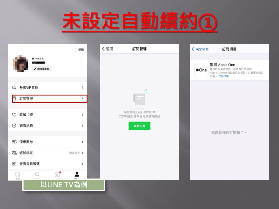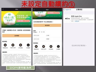 李局長也提醒消費者,如果想了解自己是否不經意的同意自動續訂,可以先至手機系統的訂閱項目查看。要取消訂閱絕對不是單純在手機螢幕上移除影音串流APP或將APP滑進垃圾桶內就可以,而是要在手機系統進行訂閱項目的取消(詳業者網頁「常見問題」)。(5/27*15)* 法制局