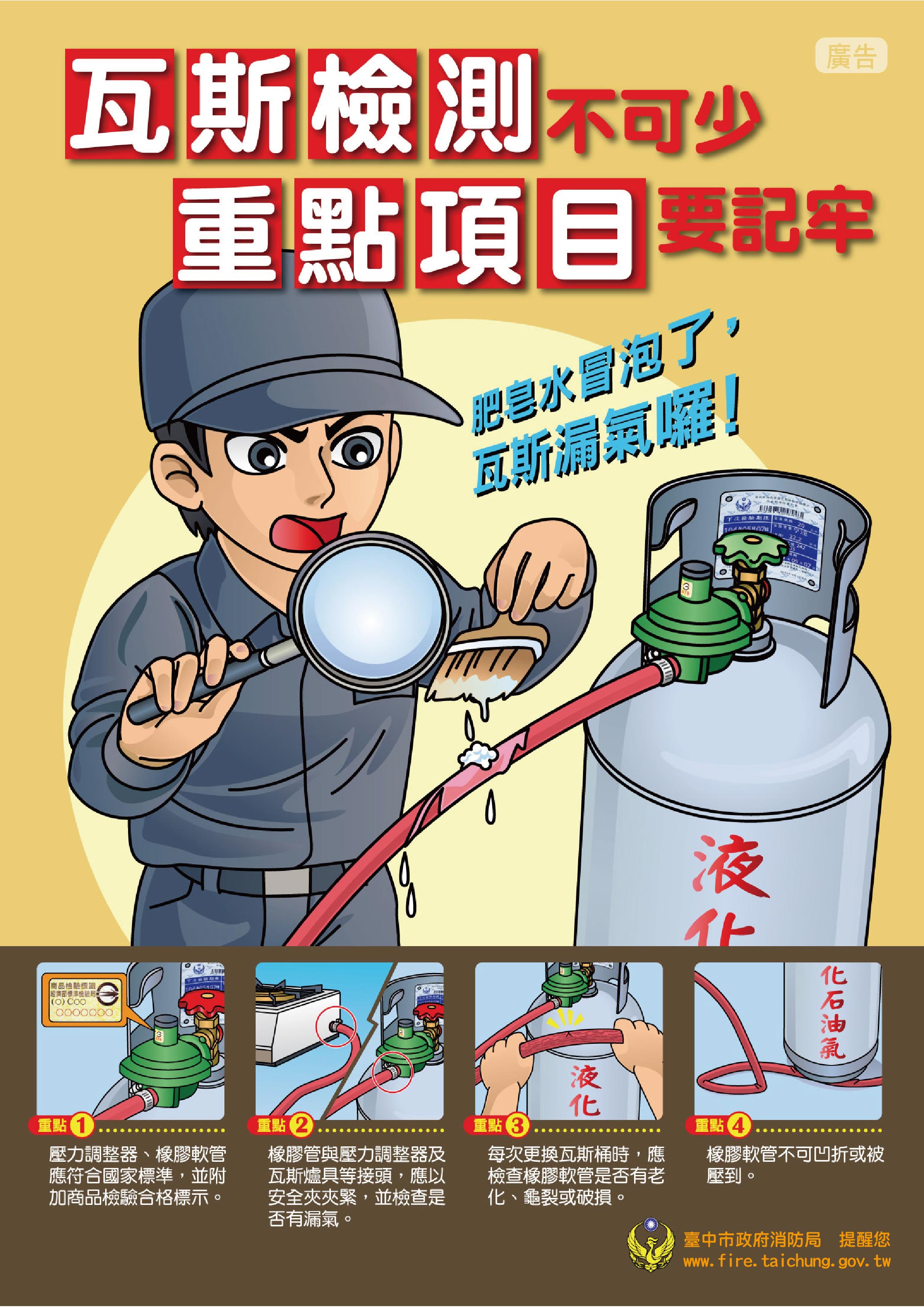 降低瓦斯災害 中市消防局籲落實保養、定期檢修