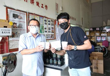 國內疫情三級警戒,餐飲業者生意大受影響,82mm Café為此發起「抗疫共存計畫」,與Lightbeam Espresso BarAt Three Café及淺川咖啡館等咖啡業者合作,邀請企業提供「活力咖啡」予第一線防疫英雄,只要響應就享半價優惠。豐邑機構獲知後一口氣即訂下240杯咖啡,昨(15)日特別慰勞台中市政府環境保護局清潔人員,一杯冰拿鐵立即消暑,讓清潔人員又驚又喜。