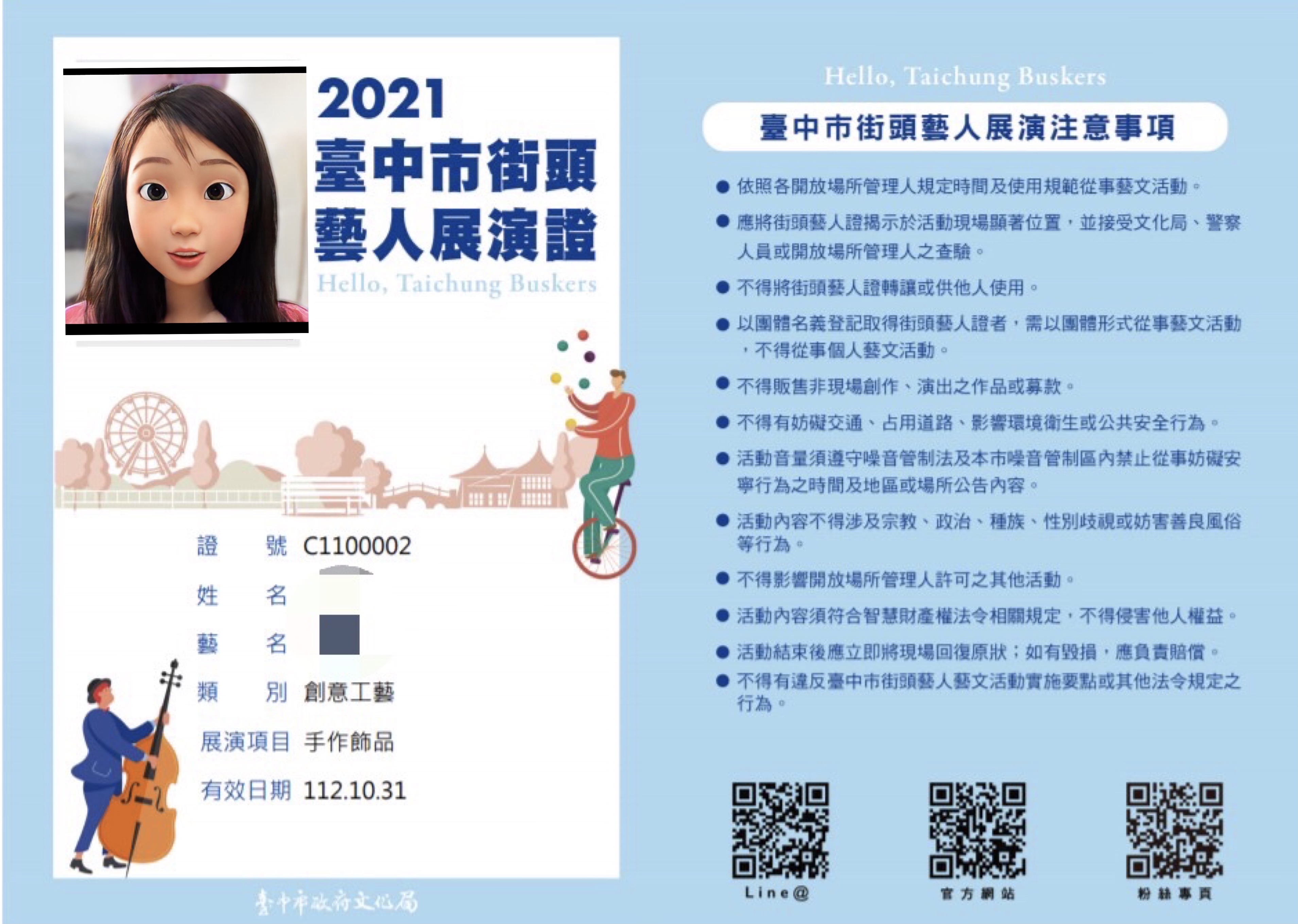 臺中市街藝E起來,街頭藝人證線上列印真方便