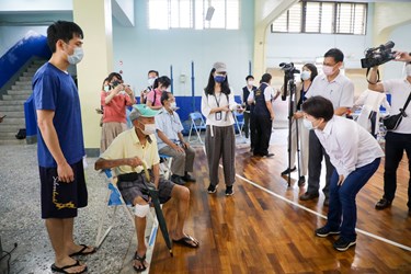 盧市長表示,這一批老人疫苗的注射提供幾項服務,第一、免預約直接發通知單;第二、提供身障不便長輩交通接送服務,台中市85歲以上行動不便曾搭乘復康巴士的身障長輩大概有1400人左右,其中A級的身障長輩(行動不便程度較高)400位,社會局主動電話聯繫關懷協助預約,估計這三天復康巴士接送約90名身障長輩施打疫苗,服務計170趟次。