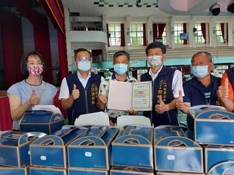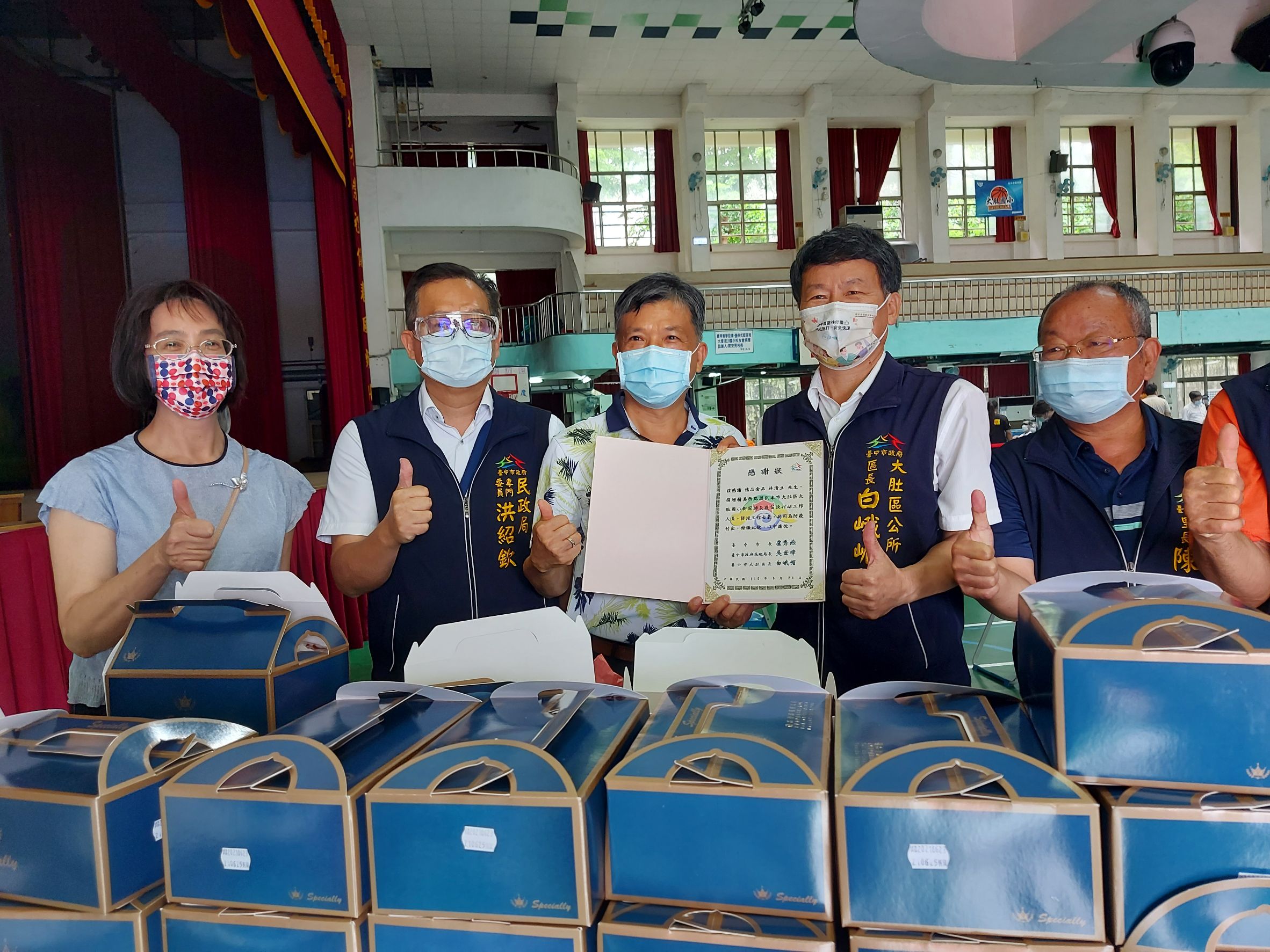 大肚區長白峨嵋說明,億品食品公司林董事長長期投入公益回饋社會,由於新冠肺炎疫情仍未趨緩,林董事長有感於市府團隊及醫護人員全力投入防疫工作,相當辛勞,透過捐贈西點表達感謝之意。市府團隊將繼續努力、繼續防疫、絕不掉以輕心,持續守護民眾的生命財產安全。(6/24*8)*民政局