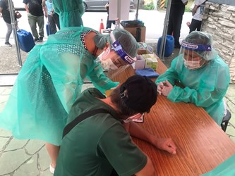 社會局表示,由於達觀部落到和平衛生所車程約1個小時,為了不讓距離阻礙原鄉長輩施打疫苗,社會局與和平區公所合作試辦,出動大型復康巴士,免費載送達觀部落和白布帆部落的長輩與身障朋友施打疫苗,乘車人員全程佩戴口罩並採梅花座,順利完成接種。