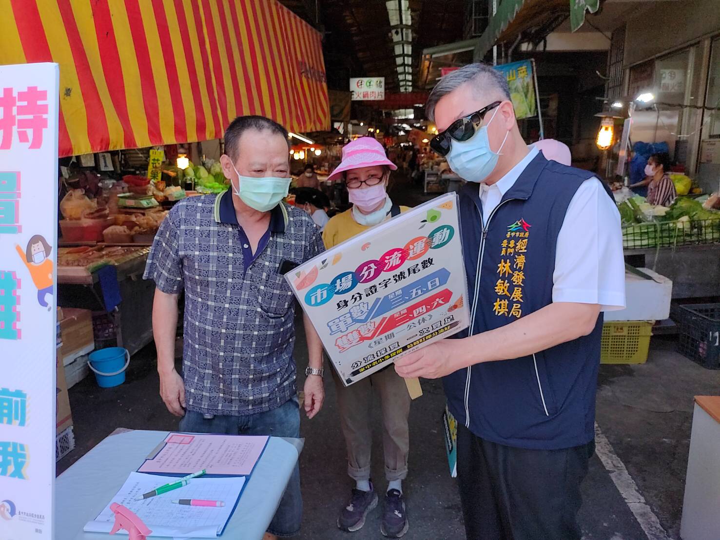 經發局長張峯源表示,全國疫情三級警戒延續至7月12日,國內本土疫情仍然嚴峻,尤其國內出現Delta變種病毒群聚感染,防疫仍不能鬆懈,市場採買的人潮群聚恐提高感染風險,請攤商及民眾出門務必全程佩戴口罩,做好防疫及分流措施,避免人潮聚集。
