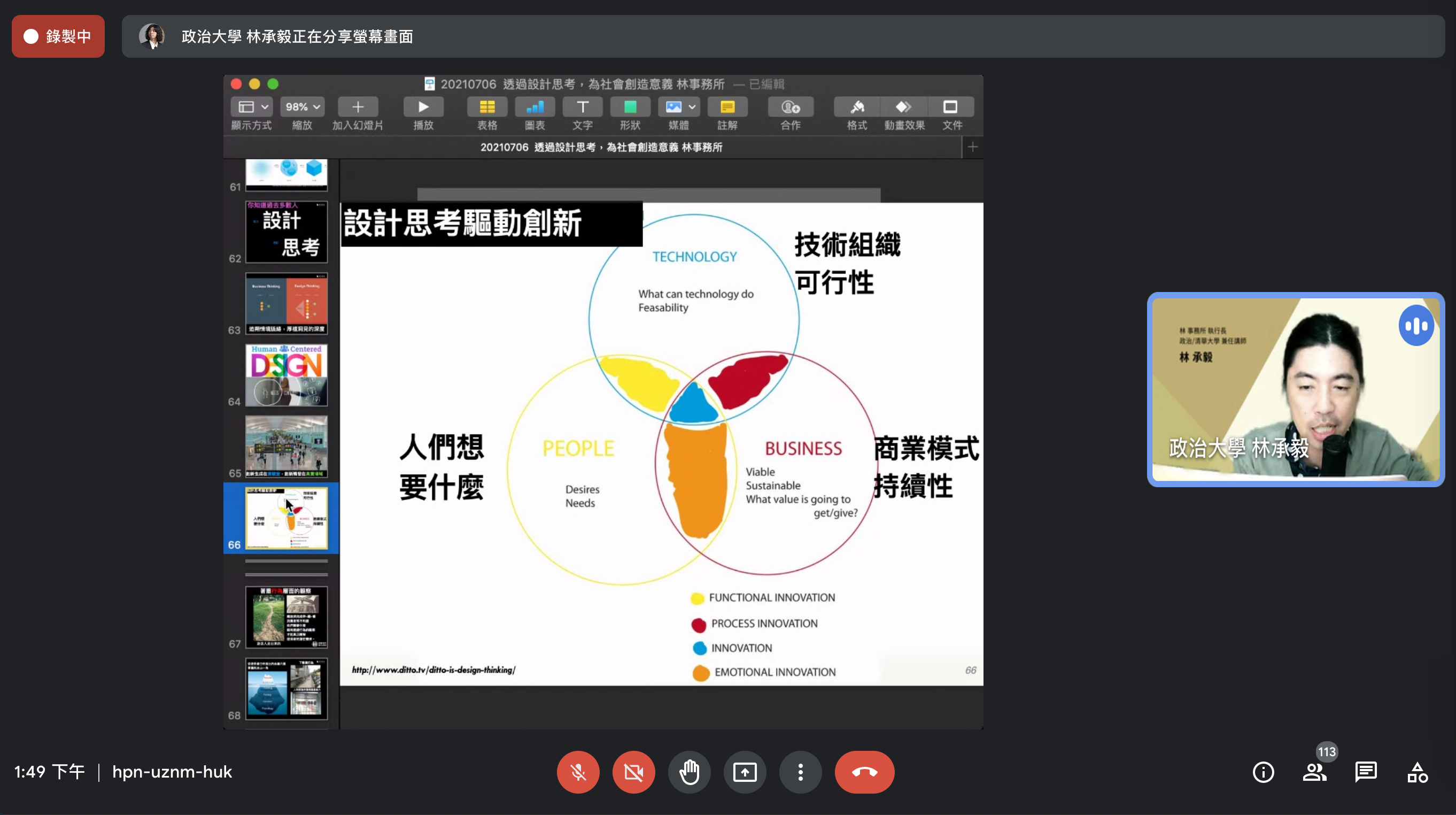 執行長林承毅提到,設計思考要從『同理心』去發想,而設計師最重要的任務,是從人的角度和需求出發,去守護『以人為本』的價值。他鼓勵學員透過設計思考覺察問題並創造解決方案。