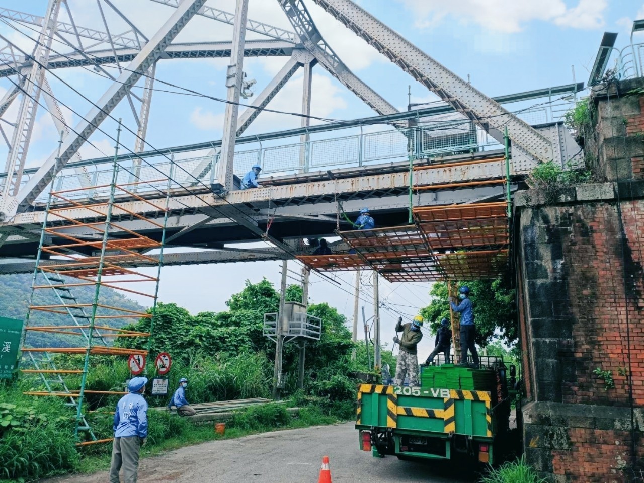 觀旅局提醒,民眾進入施工區域時,因除鏽塗裝可能產生粉塵及氣味問題,切勿逗留儘速通行,並請注意安全,施工造成不便之處,敬請見諒,完工後將為在地居民及遊客帶來更亮麗友善的休憩設施及騎乘環境,一起見證這座百年歷史建築之美,並安心享受疫後騎乘鐵馬遨遊樂趣。(7/13*8)*觀光旅遊局