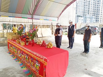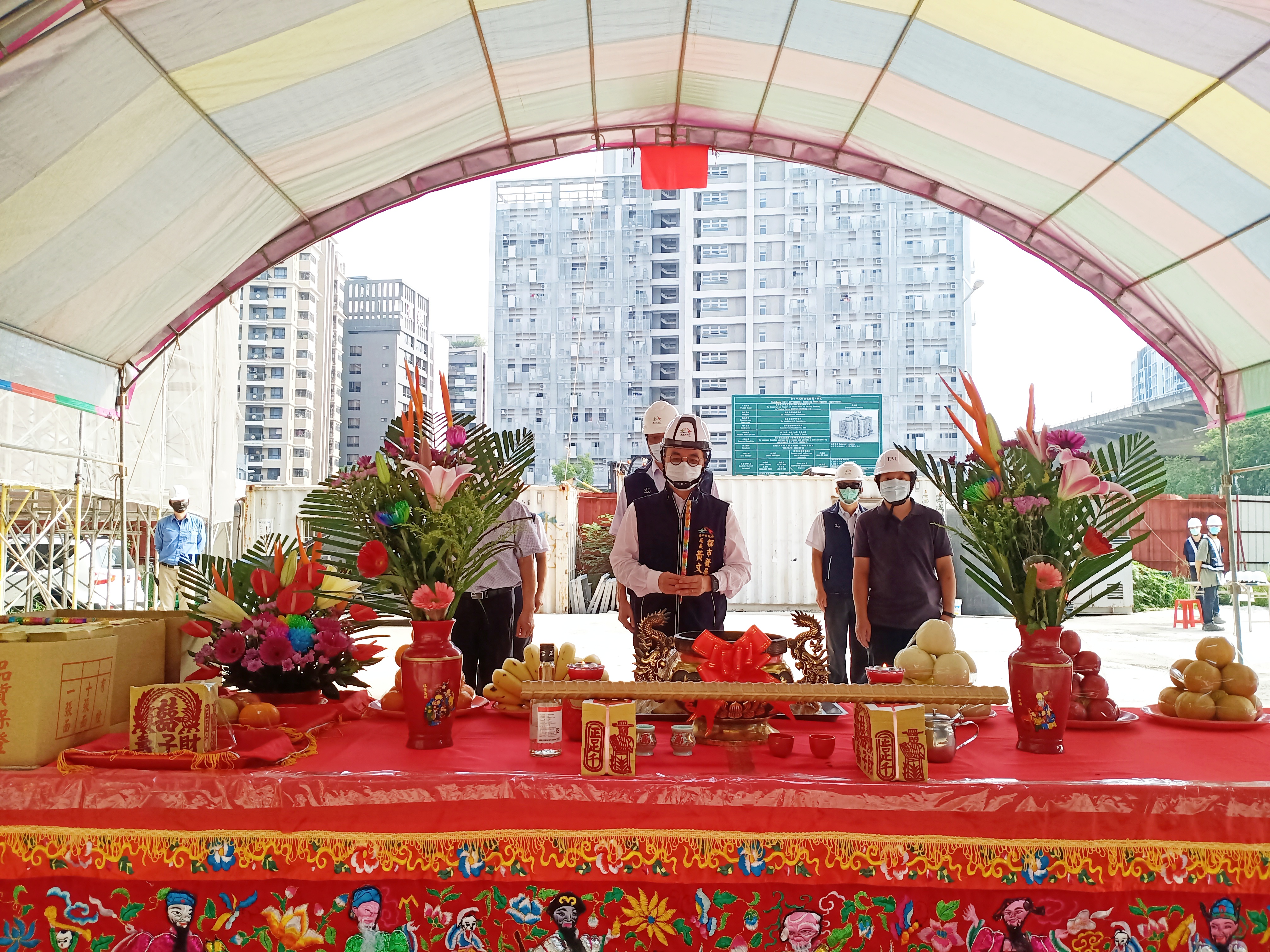 太平區育賢段區域好宅繼6月育賢三期開工動土,今(19)日育賢二期再舉行上梁儀式,因應新冠肺炎疫情,台中市政府都市發展局長黃文彬帶領台中市住宅發展工程處長陳全成及相關單位透過簡單隆重的儀式為工程祈福。住宅處表示,育賢二期好宅工程由市府編列總經費約162千萬元,預計明年底完工,提供428戶住宅。