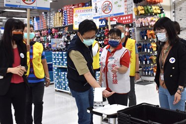 張局長今日至家樂福文心店視察社交距離宣導員設置情形,並於排隊處、熱門銷售區機動提醒民眾注意社交距離。張局長表示,各夜市設置「社交距離宣導員」成效良好,賣場為重要民生必須場所,人流量較多易發生社區傳播風險,因此市府要求賣場增設社交距離宣導員,一旦發現人潮增加或聚集時,立即提醒民眾注意,有效提升消費場所安全,確實守護市民健康。