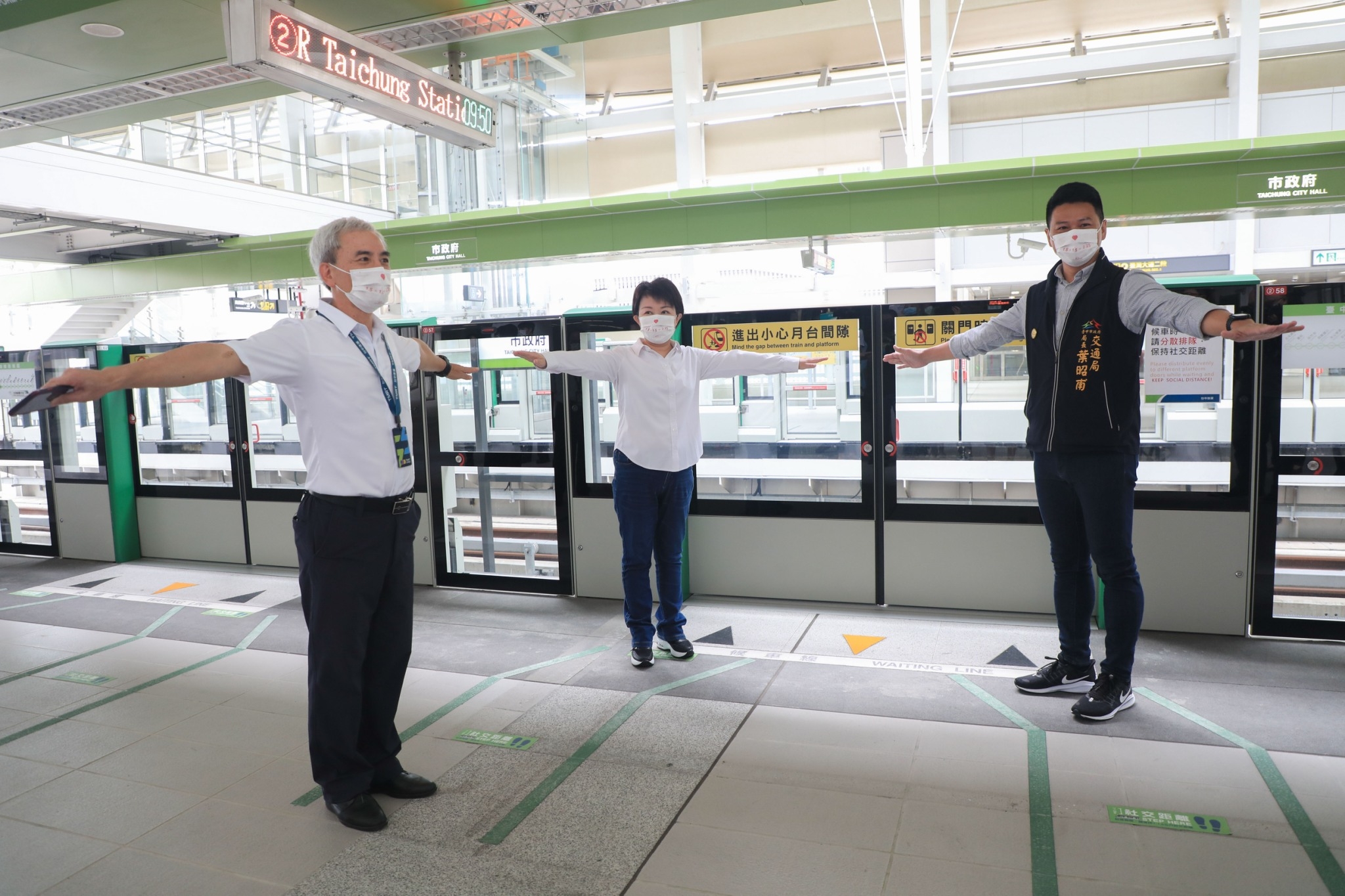 國內疫情警戒降為二級後,台中捷運綠線運量明顯回升,今(31)日是降級後第一個週六,市長盧秀燕上午特別前往捷運市政府站視察車站電扶梯、月台區、車廂等防疫措施,她表示,台中捷運除落實防疫不鬆懈,並加開班次疏運旅客,避免群聚風險,也呼籲旅客持續遵守防疫規定,守護你我健康。