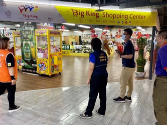 東協廣場為外籍移工假日聚集的重要場所,防疫措施不可輕忽,為督促業者加強相關防疫工作,台中市政府經濟發展局主任秘書倪世齡昨(17)日率隊至東協廣場稽查,檢視大樓出入口落實防疫情形,並針對1到3樓為公有第一零售市場各攤位及2樓台中跨境體驗示範基地,逐一督導業者應落實防疫工作,共同營造安心消費的優質環境。