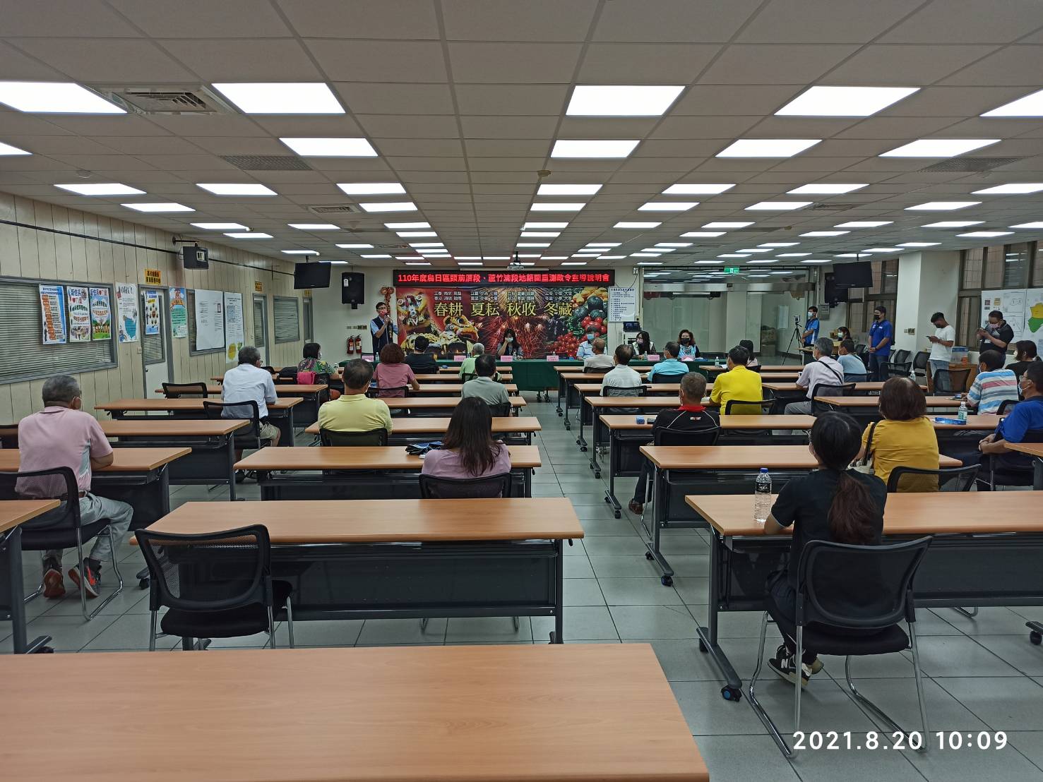 大里地政事務所陳紋速主任說明,因疫情考量,為控制出席人數,大里地政事務所事先已分別拜會轄區議員及里長服務處說明,邀請重測區內土地所有權人及相關單位代表,約有50位參與重測宣導會,地籍圖重測數值化後可完整銜接區段徵收開發地區,協助土地所有權人釐整界址,解決日治時期地籍圖地籍經界線因圖紙伸縮變形、破損,導致民眾申請鑑界經常發生圖、地不符及界址爭議問題。(8/20*6)*地政局